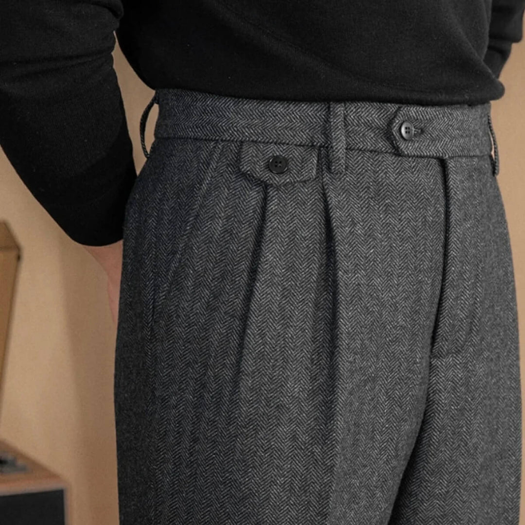 Sloane - Herringbone Pleated Trousers